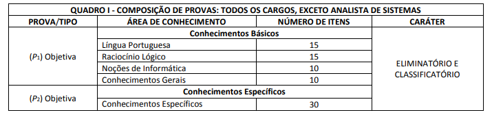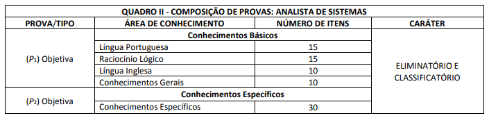 Os candidatos foram avaliados por meio de provas objetivas e discursivas: