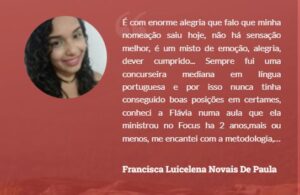 Mas, você tem muita dificuldade em fazer planejamento de estudo? Seus problemas acabaram: a professora Flávia Rita Coutinho Sarmento, referência em português para concurso público e redação, criou um curso GRATUITO para ajudar você a montar um cronograma e acelerar a sua aprovação. CLIQUE AQUI E PEGUE SEU PRESENTE.