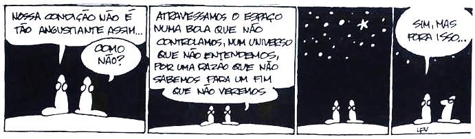 Questão #09. A partir da análise do trecho “Nossa condição não é tão angustiante assim…”, do Texto 2, analise as assertivas e assinale a alternativa que aponta a(s) correta(s).